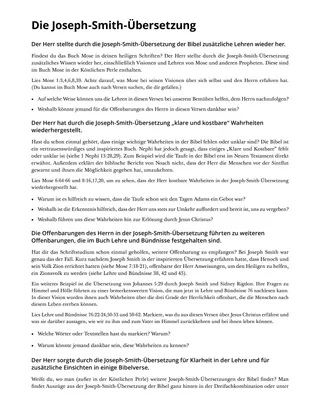 Eine Wahrheit, die der Herr in diesen Versen lehrt, lautet: Jesus Christus hat durch die Joseph-Smith-Übersetzung der Bibel zusätzliche Wahrheiten offenbart, die uns zur Erlösung führen sollen. Die folgenden Informationen könnten den Schülern bei der zweiten Frage helfen.