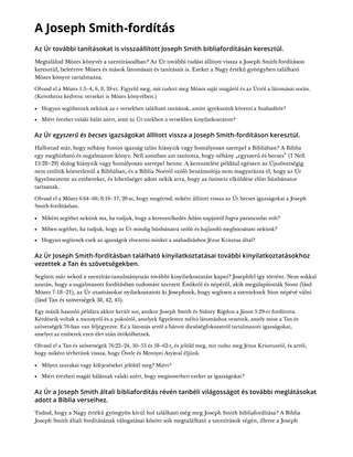 Az Úr megáldotta az életedet a Joseph Smith-fordítás által.