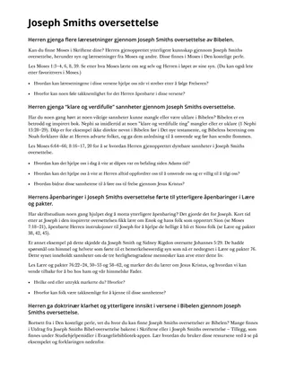 Sommeren 1830 begynte profeten Joseph Smith å arbeide med en inspirert revisjon eller oversettelse av King James Bibel. Han anså dette prosjektet som en viktig del av sitt kall som Guds profet. Denne leksjonen kan hjelpe elevene å føle takknemlighet for det Herren har åpenbart gjennom Joseph Smiths oversettelse av Bibelen.