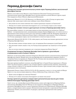 Чтобы познакомить студентов с Переводом Библии, выполненным Джозефом Смитом, можно представить для них следующие утверждения. Предложите студентам догадаться, истинно или ложно то или иное утверждение.
