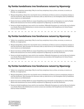 Fotopampianarana sy Fanekempihavanana 101:43–45. Ireo torolalana nomen’ilay andriandahy |