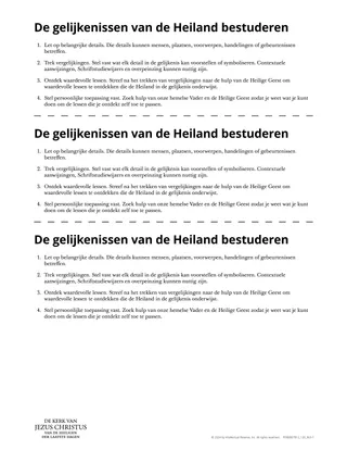 Stel onder inspiratie van de Heilige Geest een of twee manieren vast waarop je een waarheid kunt toepassen die door deze gelijkenis belangrijk voor je voelt. Schrijf je indrukken op in je studiedagboek.