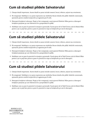 Caută ajutor de la Duhul Sfânt pentru a identifica unul sau două moduri în care poți pune în practică un adevăr, din această pildă, care pare important pentru tine. Consemnează-ți impresiile în jurnalul tău pentru studiu.