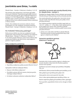 „Savo mokymosi įvertinimo pamokos papildomam darbui“, Doktrina ir Sandoros. Seminarijos mokytojo vadovėlis (2025)