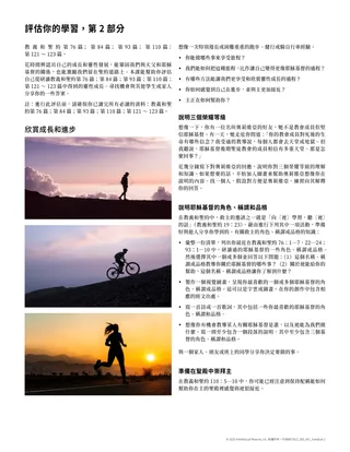 如果學生需要完成對前半學期課程的評估,向他們提供標題為「評估你的學習,第1部分」的講義。如果學生需要完成對後半學期課程的評估,向他們提供標題為「評估你的學習,第2部分」的講義。鼓勵學生在完成評估前,先完成必讀的閱讀材料。學生完成這項評估後,應向你報告。當他們報告時,請他們分享從這項活動中學到的事。
