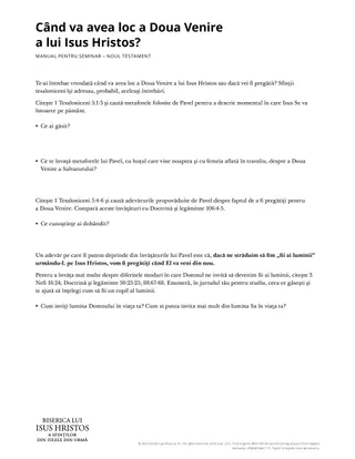 Activitățile de studiu de mai jos sunt menite să ajute cursanții să studieze și să explice învățăturile lui Pavel către tesaloniceni despre a Doua Venire.