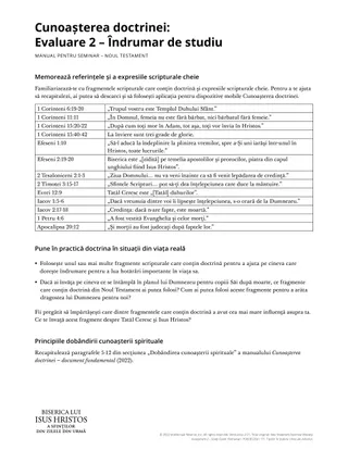 Cunoașterea doctrinei: Evaluarea 2 – Îndrumar de studiu