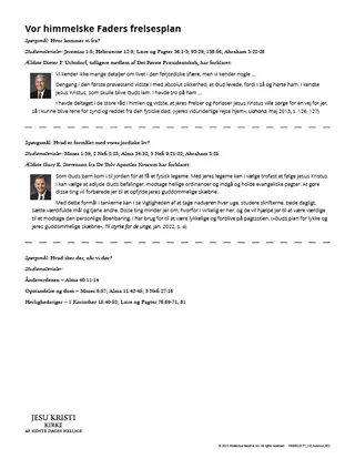 Besvar følgende spørgsmål i jeres studiebog som en hjælp til at reflektere over det, I allerede forstår om vor himmelske Faders frelsesplan.