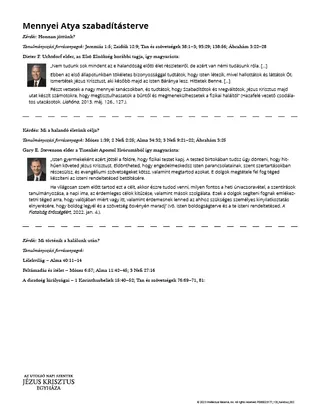 A tanulmányozási naplódban válaszold meg a következő kérdéseket, amelyek segítenek átgondolnod, mi az, amit már tudsz Mennyei Atya szabadítástervéről.