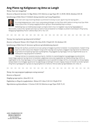 Sa ating premortal na buhay, tayo ay “nagsigawan sa tuwa” (Job 38:7) nang malaman natin ang plano ng Ama sa Langit para sa ating walang-hanggang pag-unlad. Si Jehova ang piniling maging Tagapagligtas at Manunubos natin, na nagbibigay ng daan para makabalik tayo sa Ama at maging katulad Niya. Ang lesson na ito ay makatutulong sa mga estudyante na maunawaan ang plano ng kaligtasan ng Ama sa Langit at ang mahalagang tungkuling ginagampanan ni Jesucristo.