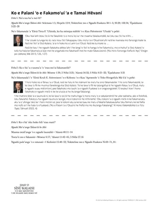 “Ko e Palani ʻo e Fakamoʻuí: ʻOku Mahuʻinga ʻa e Fakamoʻuí ki he Palani ʻa e Tamaí,” Fuakava Motuʻá – Tohi Lēsoni maʻá e Faiako Seminelí