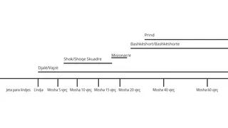 Merreni parasysh të vizatoni një bosht kohor në tabelë dhe t’i ftoni nxënësit të krijojnë boshtin e vet kohor në ditarët e tyre të studimit. Më poshtë jepet një model i një boshti kohor.