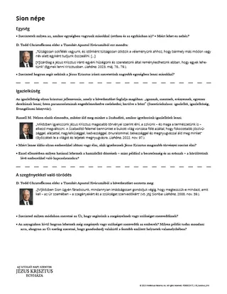 Hogy segíts a tanulóknak jobban megérteni, hogyan legyenek egységesek, éljenek igazlelkűen, és gondoskodjanak a rászorulókról, megkérheted a tanulókat, hogy dolgozzanak kisebb csoportokban a következő kiosztmányon. A tevékenység során igyekezhetnek segíteni és támogatni egymást. Az alábbiakban felsorolunk két módot a kiosztmány felhasználására: