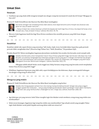 Untuk membantu siswa memahami lebih baik bagaimana bersatu, hidup dengan saleh, dan mengurus orang-orang yang membutuhkan, pertimbangkan untuk meminta siswa mengerjakan selebaran berikut dalam kelompok-kelompok kecil. Mereka dapat berusaha untuk saling membantu dan mendukung di sepanjang kegiatan. Berikut adalah dua cara Anda dapat menggunakan selebaran: