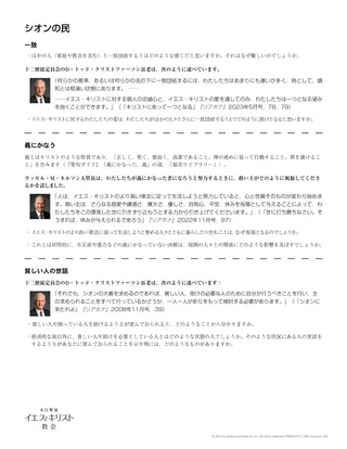 生徒が一致団結し,義にかなった生活をし,助けを必要としている人々への思いやりをもつ方法をよりよく理解できるように,少人数のグループで,以下の配付資料を学ぶよう生徒に伝えるとよいでしょう。生徒たちは活動の間,互いに助け合い,支え合うよう努めることができるでしょう。配付資料を使う方法を二つ紹介します。