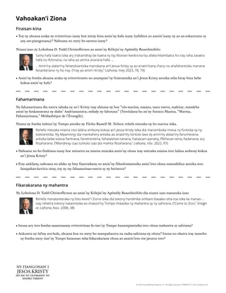 “Ny Tompo dia niantso ny vahoakany hoe i Ziona”