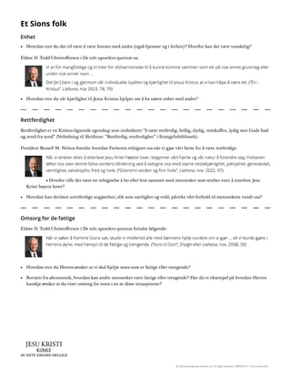 Hjelp elevene å finne en sannhet som ligner på Herrens folk streber etter å være forenet, leve rettskaffent og bry seg om de fattige blant seg. Du kan påpeke at dette også er Frelserens egenskaper. Å bli Herrens folk betyr å bli mer lik ham.