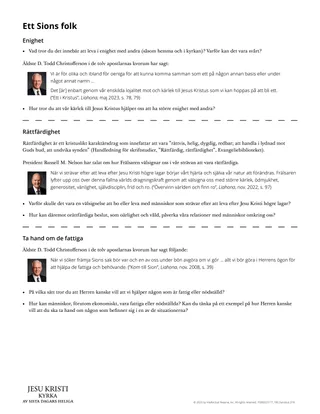 För att hjälpa eleverna bättre förstå hur de kan vara eniga, leva rättfärdigt och ta hand om människor i nöd kan du be dem arbeta med följande utdelningsblad i små grupper. De kan sträva efter att hjälpa och stötta varandra under aktiviteten. Nedan följer två sätt att använda utdelningsbladet: