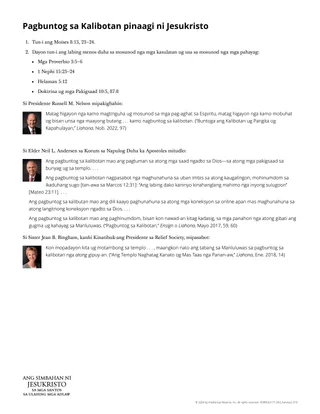 Aron matabangan ang mga estudyante nga makadiskobre og mga pamaagi nga sila makasunod sa Manluluwas sa usa ka daotan nga kalibotan, hatagi sila og instruksiyon sa ubos ug mga kopya nga naglakip sa handout. Ang mga estudyante mahimong motrabaho diha sa mga grupo. Pwede silang magkauban nga magtuon sa mga kapanguhaan, o pwede nga mopili ang mga sakop sa grupo og lahi nga mga tudling sa kasulatan ug mga pamahayag nga bulag nga tun-an ug dayon magpundok aron hisgotan.