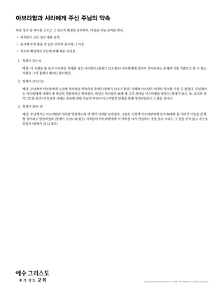 주님께서는 충실한 이들에게 영광스러운 약속을 주셨지만, 때로 우리는 우리가 처한 상황에서 그 약속이 어떻게 실현될 수 있을지 의아해할 수 있다. 아브라함과 사라는 주님께서 그들의 노년에 사라가 자녀를 갖게 될 것이라고 약속하신 후에 그렇게 느꼈을 것이다. 이 수업은 학생들이 주님께서 그분의 약속을 지키실 것이라는 신뢰를 키우는 데 도움이 될 수 있다.