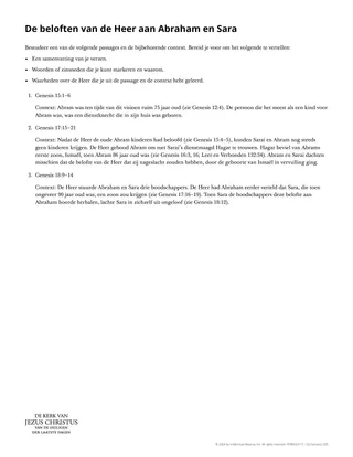 De Heer heeft de getrouwen prachtige beloften gedaan, maar soms vragen we ons door onze omstandigheden misschien af hoe die beloften ooit in vervulling kunnen gaan. Abraham en Sara voelden zich misschien zo toen de Heer ze op hun oude dag beloofde dat Sara een kind zou krijgen. Deze les kan de cursisten meer vertrouwen geven dat de Heer zijn beloften nakomt.