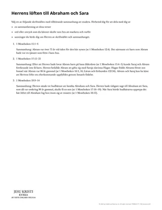 Herren har gett underbara löften till de trofasta, men ibland kan omständigheterna i våra liv få oss att undra hur dessa löften ska kunna infrias. Abraham och Sara kan ha känt så när Herren i deras höga ålder lovade att Sara skulle få ett barn. Den här lektionen kan hjälpa eleverna att stärka sin tillit till att Herren håller sina löften.