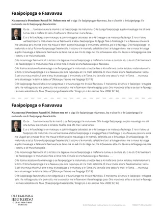 Ina ia fesoasoani ia te oe e tali atu i lau fesili, saili punaoa eseese a le Ekalesia, e pei o nei: