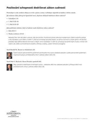 Studenti mohou rozpoznat pravdy podobné této: Naše oddanost Bohu nám může dát sílu odolávat pokušení porušit zákon cudnosti (verš 9).