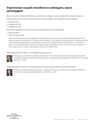 Чтобы помочь студентам углубить свое понимание этой истины, раздайте им прилагаемый материал. Можно разбить студентов на пары и поручить каждому напарнику сосредоточиться на одном из вопросов, приведенных в раздаточном материале.