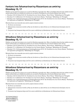Famantarana ireo fahamarinana ao amin’ny filazantsara avy amin’ny Eksodosy 15, 17