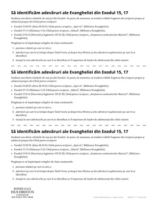 „Exodul 15; 17, Identificarea adevărurilor de la Dumnezeu în scripturi”, Vechiul Testament – Manual pentru învățătorul de la seminar