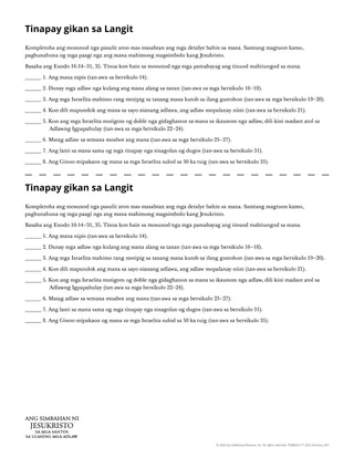 Awhaga ang mga estudyante sa pagtutok kang Jesukristo samtang magtuon sila mahitungod sa manna. Usa ka paagi sa pagbuhat niini mao ang paghatag sa mga estudyante og handout nga giulohan og “Tinapay gikan sa Langit.” Ang mga estudyante mahimong mokompleto sa handout sa tagsa-tagsa odiha sa gagmay nga mga grupo.