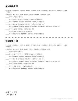 요한복음 6장 31∼35절, 47∼51절을 읽으면서 예수님께서 만나에 관해 무엇을 가르치셨는지 찾아본다.