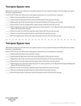Суралцагчийн бэлтгэл: Өнөөдрөөс эхлэн дараагийн хичээл хүртэл Их Эзэний хүч чадал амьдралд нь байгаа гэсэн нотолгоог олж мэдэхэд суралцагчдыг урь. Ганцаараа эсвэл гэр бүлээрээ залбирахдаа Тэнгэрлэг Эцэгийн тусламжид цаг гарган талархахад тэднийг урамшуулан дэмж.