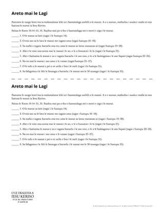 O fea o nei gaioiga na fesoasoani ia te oe e valaaulia ai le Areto o le Ola, o Iesu Keriso, i lou olaga i aso uma?Na faapefea ona Ia fafagaina pe faamalosia oe o se taunuuga?