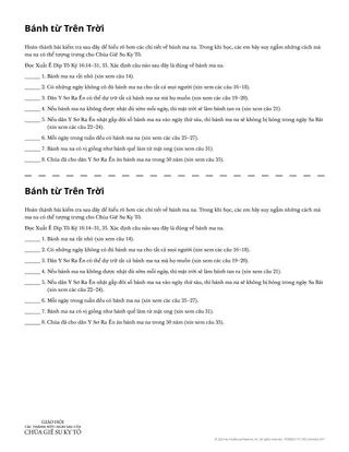 Khuyến khích học viên tập trung vào Chúa Giê Su Ky Tô khi các em nghiên cứu về bánh ma na. Một cách để thực hiện điều này là cung cấp cho học viên tài liệu phát tay có tiêu đề “Bánh từ Trên Trời”. Học viên có thể hoàn tất tài liệu phát tay này một mình hoặc theo nhóm nhỏ.