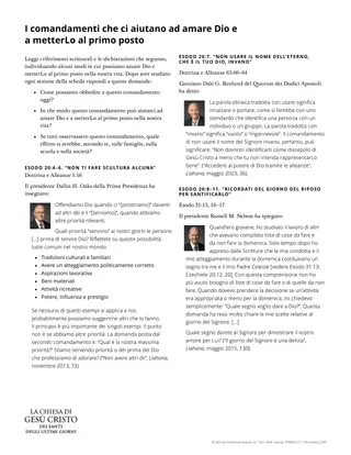 Preparazione degli studenti: Invita gli studenti a fare un elenco di alcuni comandamenti di Dio. Invitali poi a parlare con un familiare o un amico di come i comandamenti che hanno elencato aiutano questa persona a dimostrare il suo amore per Dio e a metterLo al primo posto nella sua vita.