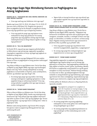 Basaha ang Exodo 20:12–17, ang kataposang unom sa Napulo ka Sugo. Pangitaa kon giunsa pagtudlo niini nga mga bersikulo nga pinaagi sa pagsunod sa Napulo ka Sugo, atong gipakita ang atong gugma alang sa Dios ug sa atong silingan.