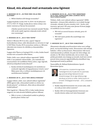Soovi korral jagage oma mõtteid selle kohta, kuidas kuulekus Issanda käskudele võib aidata meil Jumalat ja teisi rohkem armastada. Võiksite innustada õpilasi püüdma jätkuvalt kümnele käsule kuuletuda.