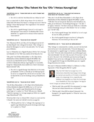 Lau ʻa e ʻEkesōtosi 20:12–17, ko e fekau fakaʻosi ʻe ono ʻo e Fekau ʻe Hongofulú. Kumi e founga ʻoku akoʻi ai ʻe he ngaahi veesi ko ʻení ʻoku tau fakahaaʻi ʻetau ʻofa ki he ʻOtuá mo hotau kaungāʻapí ʻi heʻetau moʻui ʻaki e Fekau ʻe Hongofulú.