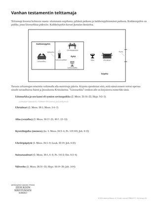 Monisteen sijaan voisit pyytää oppilaita tutkimaan artikkelia ”Tutustu muinaiseen telttamajaan” (Liahona, maaliskuu 2018, s. 26–27) tai katsomaan videon ”Telttamaja” (7.18), joka on sivustolla churchofjesuschrist.org.