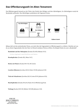 Anstelle des Arbeitsblattes können Sie den Schülern auch den Artikel „Die Wohnstätte Gottes in alter Zeit“ (Liahona, März 2018, Seite 26f.) zu lesen geben oder mit ihnen das Video „Die Wohnstätte“ (7:18) auf ChurchofJesusChrist.org ansehen.
