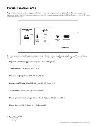 Асрын бэлгэдлүүдийн талаар суралцахад нь суралцагчдад туслах зорилгоор “Хуучин Гэрээний асар” гарчигтай тараах материал өгөхийг бод. Мөн та тууз юм уу уяа ашиглан, тарааж өгөх материал дээрх бүдүүвч зургийг ангийн шалан дээр дуурайлган хуулбарлаж болно.