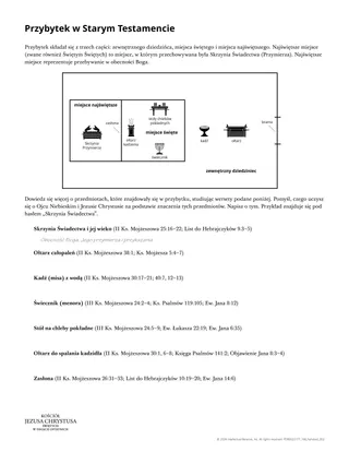 Zamiast ulotki możesz poprosić uczniów, aby przestudiowali artykuł pt. „Journey through the Ancient Tabernacle” [Podróż przez starożytne tabernakulum] (Ensign, marzec 2018, str. 52–53) lub obejrzeli film pt. „The Tabernacle” [Przybytek] (7:18), dostępny na stronie ChurchofJesusChrist.org.