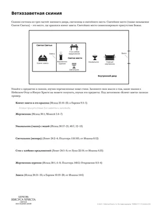 Вместо раздаточного материала можно предложить студентам изучить статью «Экскурсия по древней скинии» (Лиахона, март 2018 г., стр. 52–53) или посмотреть видеосюжет «Скиния» (7:18), доступный на сайте ChurchofJesusChrist.org.