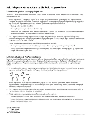 Hatagi og oportunidad ang mga estudyante sa pagtuon sa pipila sa mga sakripisyo nga gihulagway diha sa Levitico. Ang usa ka paagi sa pagbuhat niini mao ang paghatag sa handout nga nag-ulohang “Karaan nga Sakripisyo: Usa ka Simbolo ni Jesukristo.” Pwede nimong bulagon sa paghatag ang duha ka kalihokan gikan sa handout, o ihatag nimo kini isip usa ka handout.