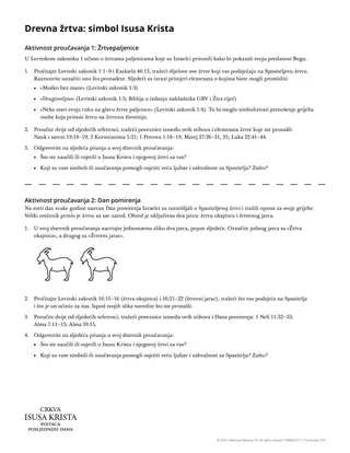 Dajte polaznicima priliku da prouče neke od žrtvi opisanih u Levitskom zakoniku. Jedan način kako to učiniti jest razdati uručak pod naslovom »Drevna žrtva: simbol Isusa Krista«. Možete razdati dvije aktivnosti iz uručka zasebno ili ih možete razdati kao jedan uručak.