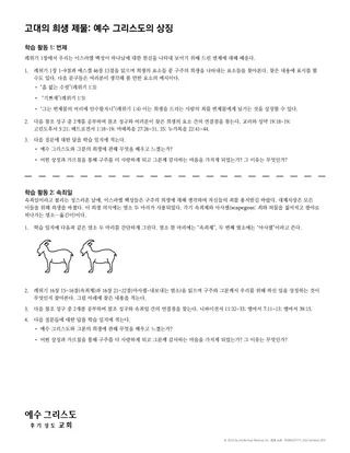 학생들에게 레위기에 묘사된 희생 의식 몇 가지를 공부할 기회를 준다. 이를 위한 한 가지 방법은 “고대의 희생 의식: 예수 그리스도의 상징”이라는 제목의 유인물을 나누어 주는 것이다. 유인물에 있는 두 활동을 따로따로 나누어 주어도 좋고, 통째로 주어도 좋다.