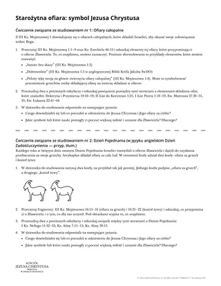 Daj uczniom możliwość przestudiowania niektórych ofiar opisanych w III Ks. Mojżeszowej. Jednym ze sposobów, aby to zrobić, jest rozdanie ulotek pt: „Starożytna ofiara: symbol Jezusa Chrystusa”. Możesz rozdzielić dwa zadania z dwóch osobnych ulotek lub możesz przydzielić je w ramach jednej ulotki.