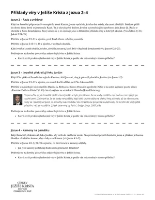 Příběhy v Jozuovi 2–4 ilustrují jeden nebo více z těchto prvků uplatňování víry v Ježíše Krista.